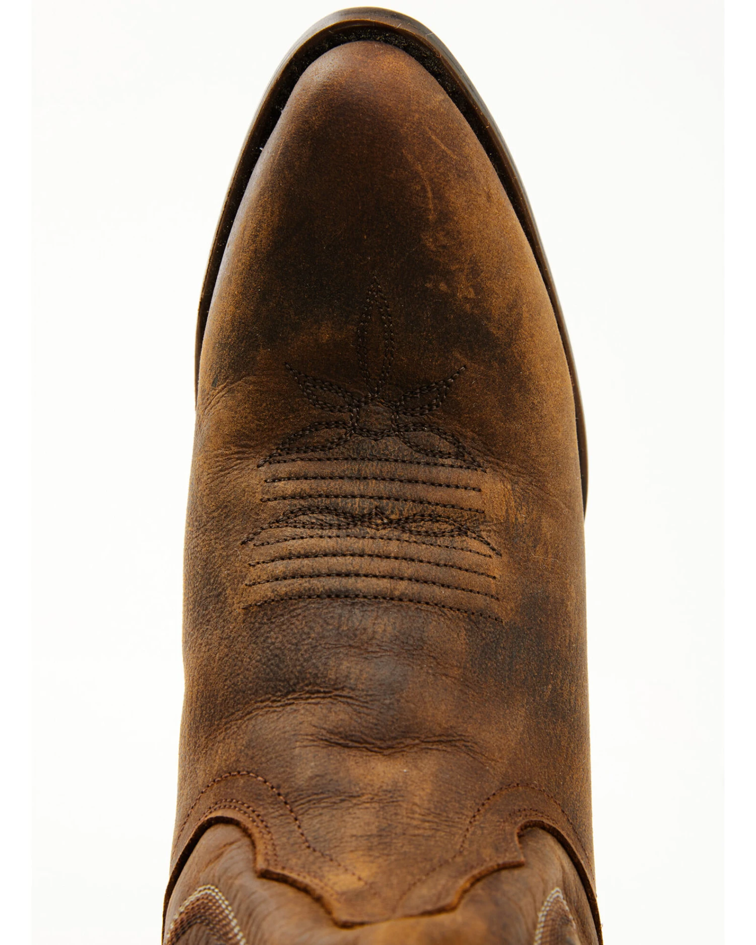 - Fancy stitching adorns shaft